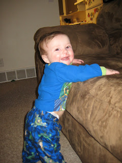 This was the first time he pulled himself up on the couch, he was so excited!